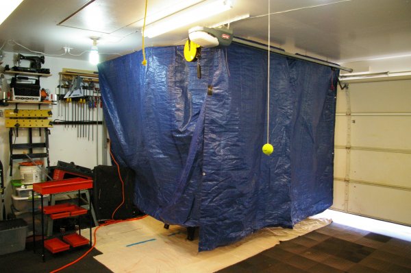 Great idea. I do a lot of sanding for furniture and that would really help. (I don't have a car project to work on at the moment)When I was doing painting in my shop I ran into the same problem but came up with a cure. I made a temporary Paint Booth that will go up in about 5 minutes; ventilation is a large box fan blowing out at the bottom of the garage door. The booth is pretty much sealed at the top and has about a 10" gap around the bottom. Fumes will usually hang mid-air or go up; with the fan out the bottom it draws the fumes and blows them outside. I was surprised at how well it works. I sprayed a toolbox the other day in enamel and you couldn't smell any of it in the house (my garage is attached to the house, probably pretty much the same as yours). When I have a lot of machine sanding to do I use the same system and it keeps the dust way down in the shop and the house.