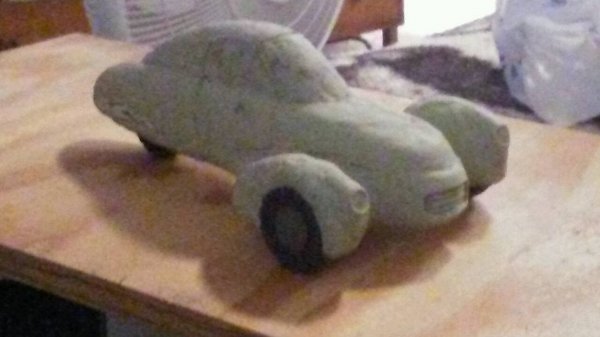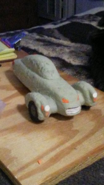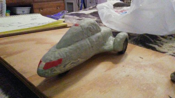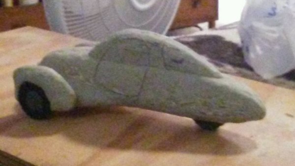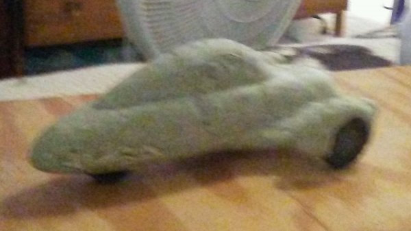I'm always playing with the ideas. ... variations on variation. This one is a single seater inspired by the 50's. Well maybe a seat and one-half at best... This is a very small vehicle.