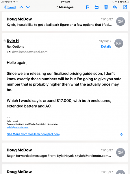 And Ampere Motor USA told us that they're 70% sure that they will offer A/C.View attachment 22389 View attachment 22389 This email from Kyle at Arcimoto, sure that he will not mind me sharing.