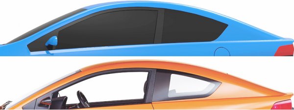 This comparison is really interesting to me. The roofline in the new version forms almost straight or maybe slightly concave at the front while the curve is convex in the P4. The effect is to carry the full height of the roof further aft and to make the whole car look sleeker and less "humpy." I wonder if the rear seat is being moved forward an inch or so as well as lowered. These are subtle changes but with a large impact. All in all, the P5 looks a lot more civilized than the P4 -- and I'm not at all sure I like it as much!Elio P5 and P4 roofline comparison.
