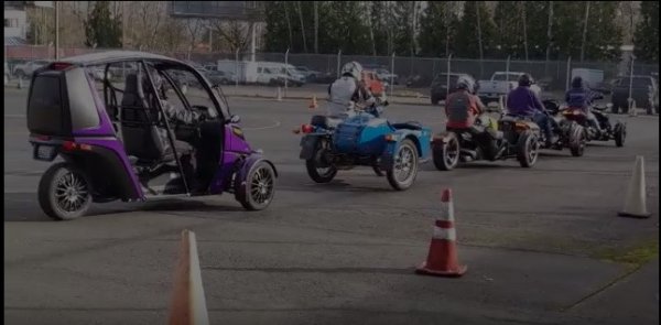 Actually, that is a picture of sidecarists and trikers lining up to take the WA 3-wheel endorsement test. WA has different tests and endorsements for motorcycles vs trikes. AZ, for example, has separate tests, but only one endorsement. IIRC, some states only have 1 endorsement, but put a restriction on the license if the test was taken on a trike.Motorcycle owners lined up and ready to take the WA State Motorcycle endorsement skills test.