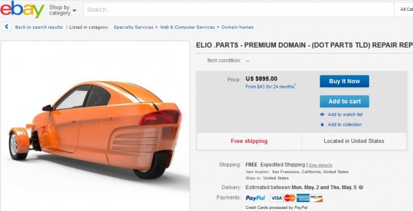 Read the ad; it's for selling Domain Names, just happens to have a picture of the Elio next to it.