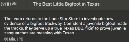 Don't worry, I always DVR The Best Little Bigfoot in Texas..