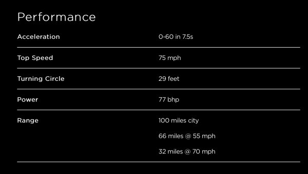 As a reference the Arcimoto FUV has an 81hp motor and weighs nearly 1,000lbs less, and a 0-60 of 7.5 seconds.