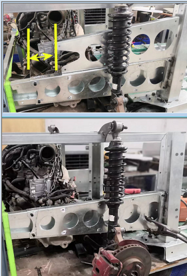 And as you can see, the suspension is basically mounted, including lateral brace from mount to mount that you can't see.