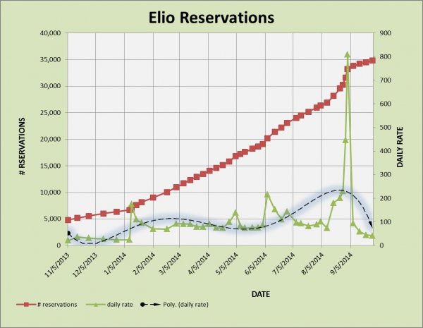 My updated chart. Reservations hanging around 42/day. With no news and only 25% rebate, not bad.