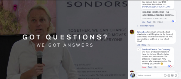 I'm puzzled by the idea of just looking at a vehicle and buying it. It seems test drives, performance, handling, fit and finish, driver fit (comfort), and safety would be critical to the decision to actually purchase any vehicle. Overly excited Facebook chatter reminds me of the 9 years I followed Elio. With that said I like the SONDORs look, but have serious doubts about it's wide body and performance with it's single rear wheel drive in-hub motor, estimated price point, and production schedule. The good thing is simple refundable reservations and frankly should be no processing fee for people wanting to show support for his vehicle.