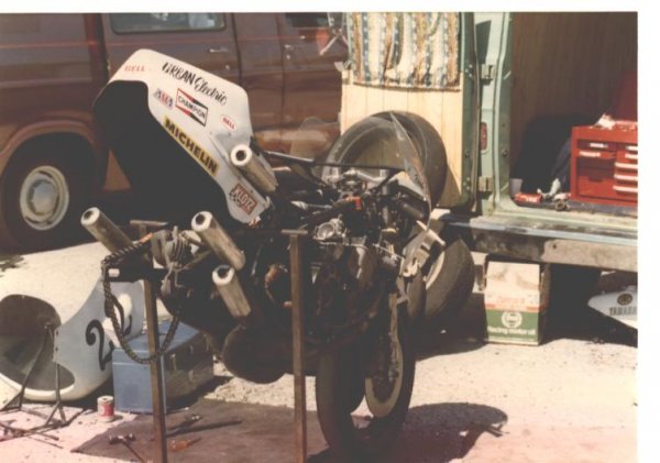 View attachment 2512 I took this picture in 1980 at Laguna Seca Raceway in Cal, two stroker four cylinders (if you can see how they packed the four expansion chambers in picture <> Way too Cool!